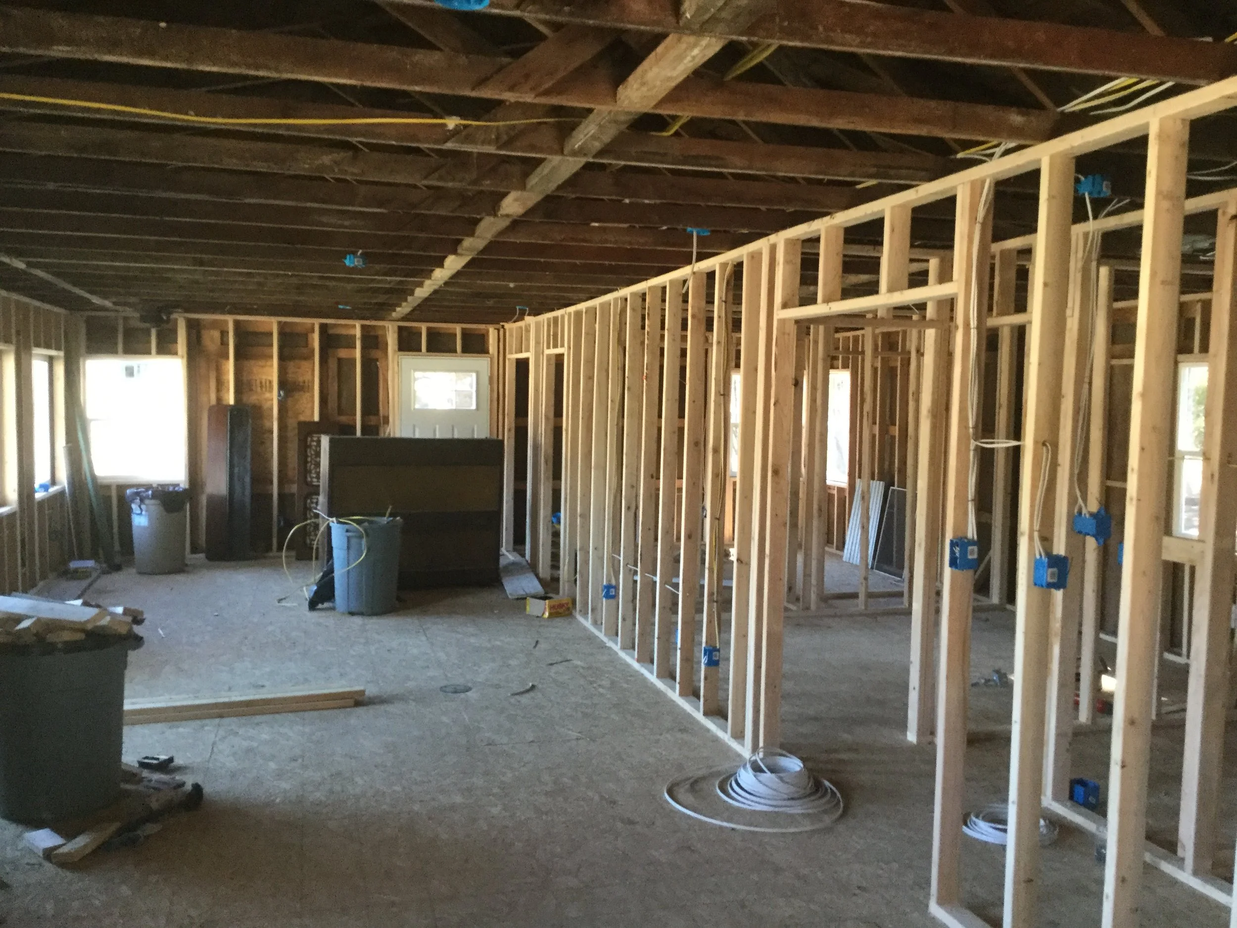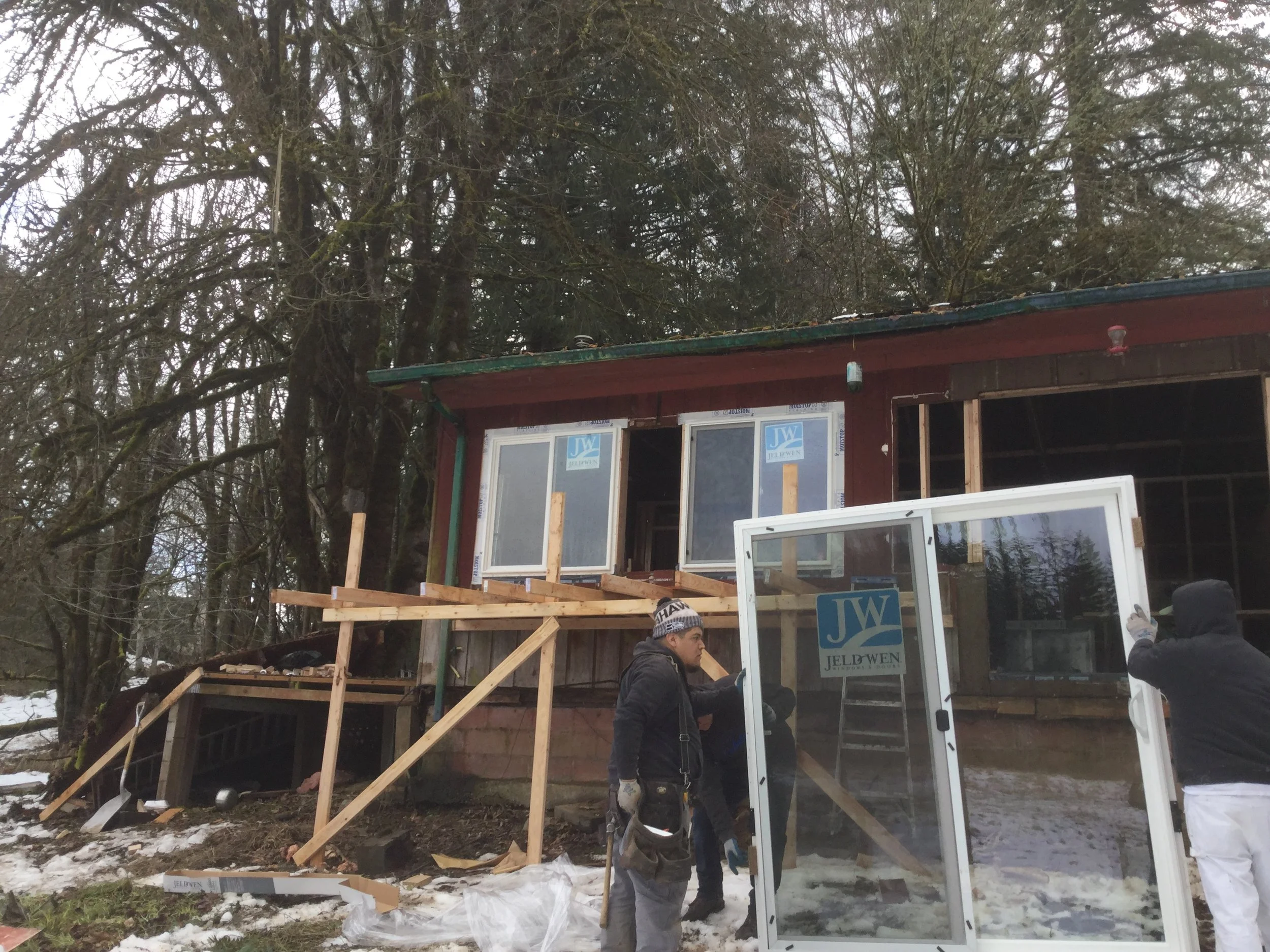 The insurance inspector has required the installation of the deck guardrails sooner rather than later. Typically weeks after a rehab project begins, the insurance company will send out an inspector to look the place over. On a truly derelict project, such as how this one began, the insurance will be cancelled within a month or so because of non-compliance to a laundry list of issues. We can’t blame them, as their business is to insure occupied homes. Our next choice becomes builder’s risk insurance which covers these more extensive remodel projects. It costs more money so the goal becomes getting to the point as soon as possible where more traditional homeowner’s insurance will cover the project until the property is sold.
